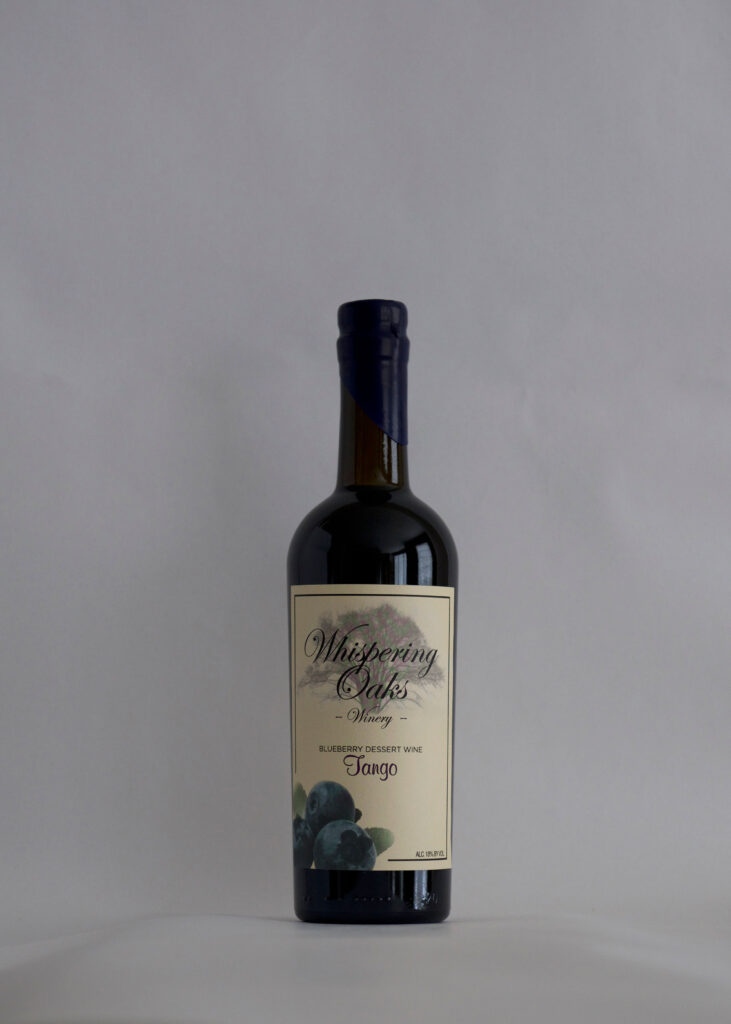 Intense characteristic fresh blueberry color and flavors. This medium bodied, semi-sweet wine is a pleasant sipper with a long finish. This is an excellent sipping wine and goes well with many foods including: smoked salmon, poultry, wild game, pork dished, crackers, cheeses and salads. It also goes especially well with chocolate and rich deserts. Serve chilled.